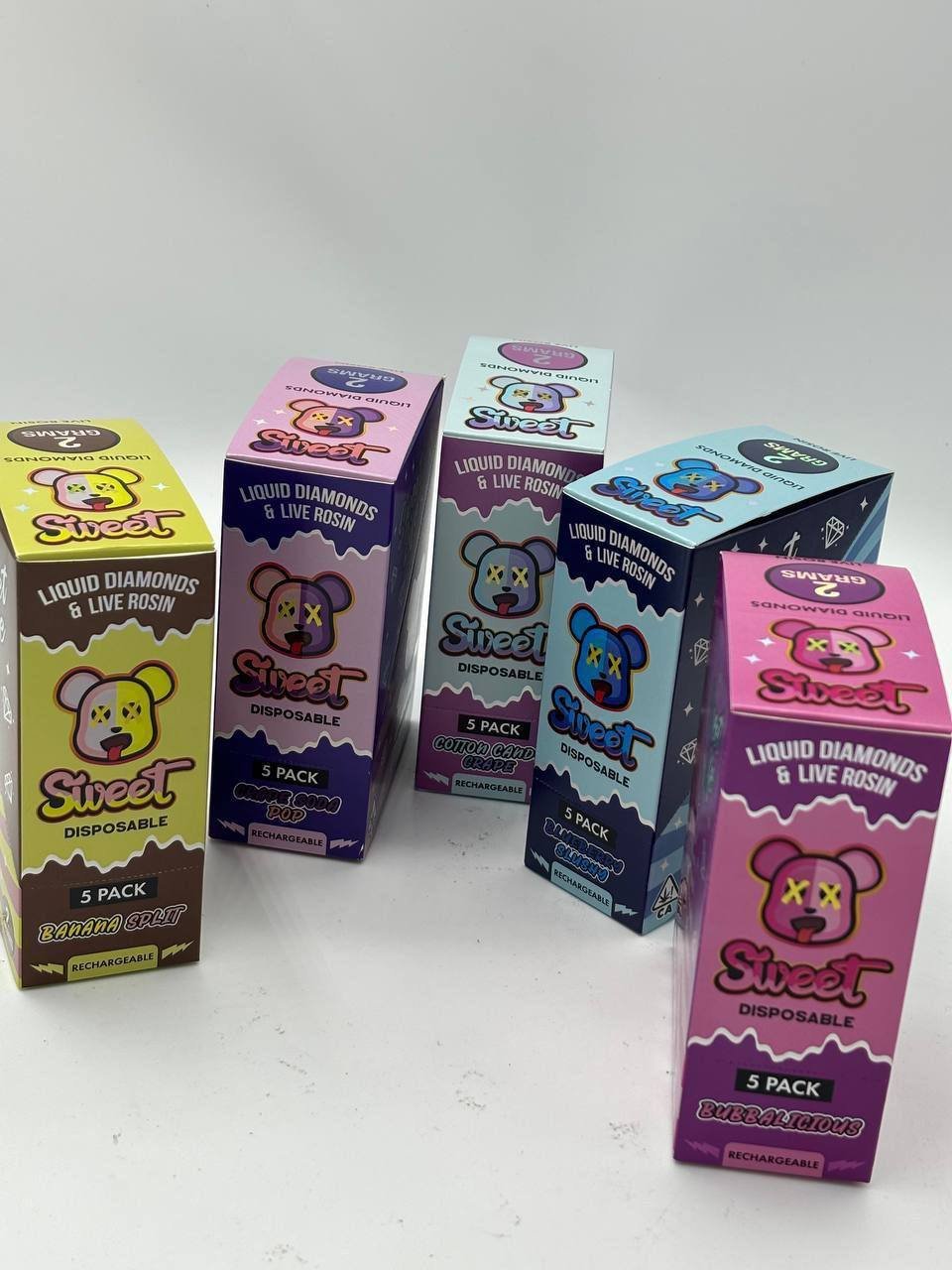 Crafted with convenience in mind, SweetCarts offer a rechargeable design that ensures you can enjoy our Cherry Blow Pop Flavor without interruption. Each cart contains 2 grams of liquid diamonds and Live Resin, providing a potent and smooth vaping session.
